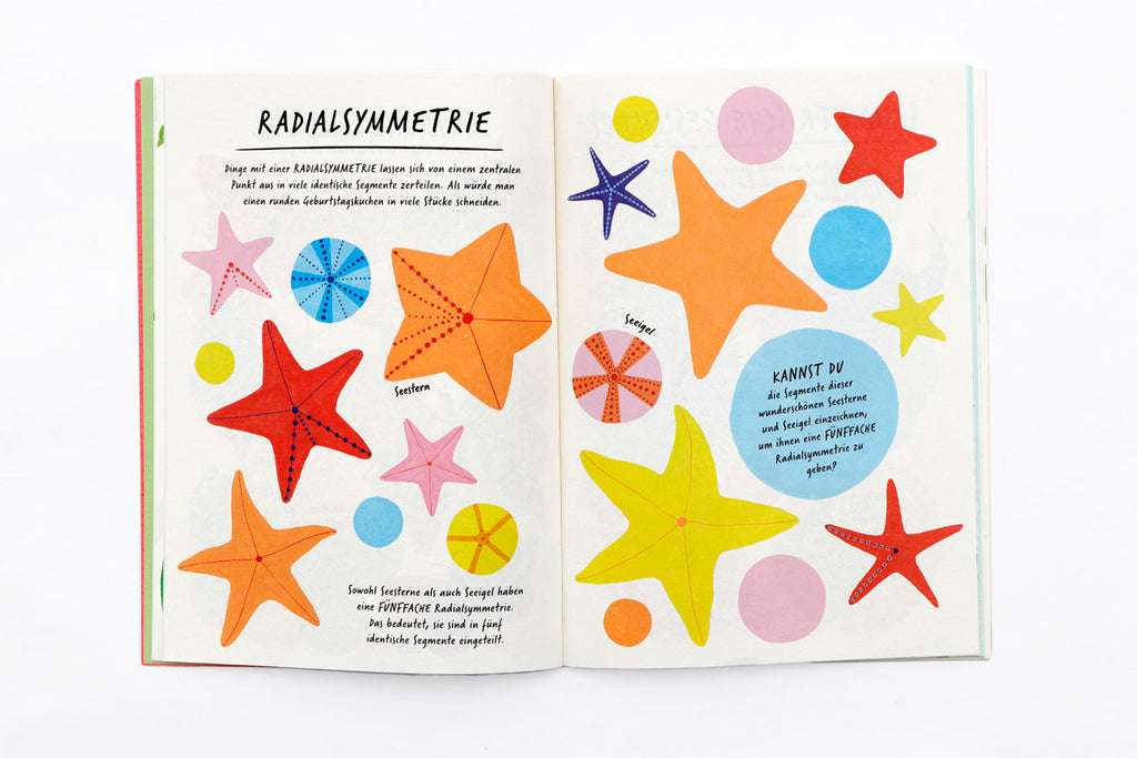 Dieses Kunst-Activity-Buch feiert die erstaunliche Vielfalt an Mustern in der Natur! Statt wie sonst Formen auszumalen, sollen hier Formen mit einem Muster verziert werden. Die Kombination aus Kreativität und beruhigenden Wiederholungen wirkt entspannend und inspirierend. Doch es können auch eigene Muster kreiert oder Mosaike erstellt werden.