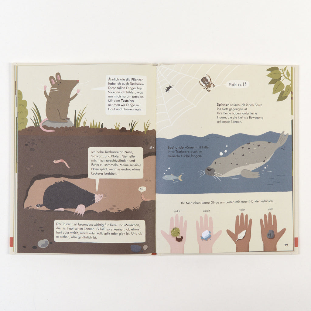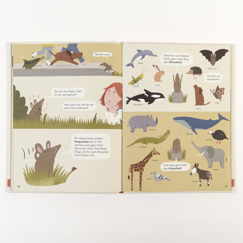 Rosi und Leo sind wieder unterwegs! Hajo, die kluge Hausmaus, kann nicht gut sehen, aber dafür sind seine Nase und seine Ohren sehr fein. Und er kennt viele Tiere mit besonderen Sinnen: Fledermaus, Seehund, Schildkröte, Elefant und viele mehr gewähren uns spannende Einblicke, die sonst verborgen bleiben. Der klare Text und die warmherzigen Illustrationen machen Lust, selbst aktiv zu werden und zu experimentieren.