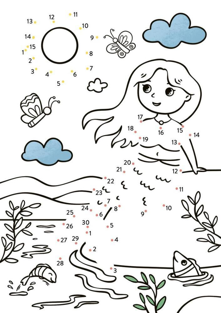 Einhörner, Feen, Meerjungfrauen, Drachen und viele weitere fantastische Wesen unterstützen in diesem Buch das spielerische Erlernen der Zahlen bis 30. Die zauberhaften Motive lassen sich im Zahlenraum 1 bis 30 verbinden und sind somit perfekt für Vorschulkinder und Schulanfängerinnen und Schulanfänger. Das bekannte Von-Punkt-zu-Punkt-Prinzip erlaubt den Kindern, eigenständig alle Rätsel zu lösen und durch die entstehenden Bilder eine Lösungskontrolle zu haben. Die 55 Rätsel unterstützen Kinder dabei, die in der Schule oder im Kindergarten gelernten Zahlen, zuhause spielerisch zu wiederholen. Die teilweise bereits kolorierten Bildteile und farbigen Punkte erleichtern und verschönern das Rätseln zusätzlich. Nach dem Verbinden der Punkte können die Motive in den Lieblingsfarben ausgemalt werden so ist stundenlanger Rätsel- und Malspaß garantiert.