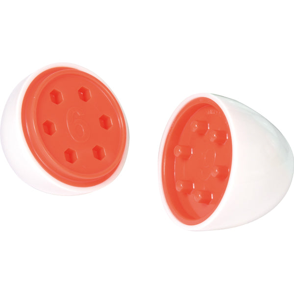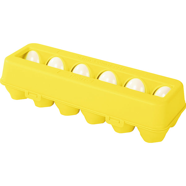 Die Eierschachtel aus Kunststoff enthält ein Dutzend Kunststoffeier. Von außen gleicht ein Ei dem anderen - doch halbiert man die Eier, sind sie verschieden: Jedes Ei hat im Inneren eine andere Farbe und ist mit einer Zahl und gleich vielen Stiften / Löchern versehen. So lassen sich mit den Eiern spielerisch Zahlen und Farben üben, das Gedächtnis sowie die Feinmotorik trainieren. Zusätzlich kann das Set für Rollenspiele (Kaufmannsladen) verwendet werden.