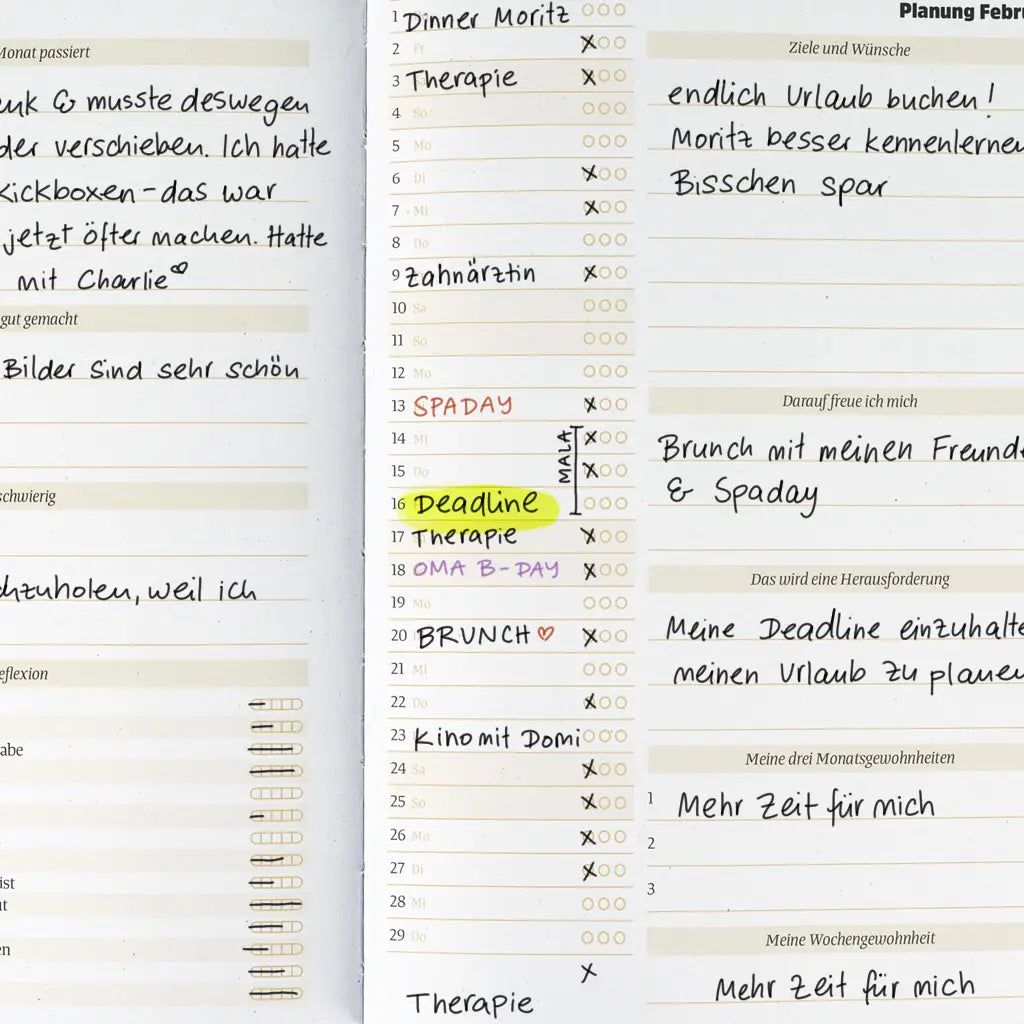 Ein guter Plan Pro ist ein prallgefülltes Paket der Planung. Monatsübersicht, Habit-Tracker, Zieldefinition, Notizen und To-dos: alles findet seinen Platz. So wird dein Kalender zur Schaltzentrale deines Lebens.