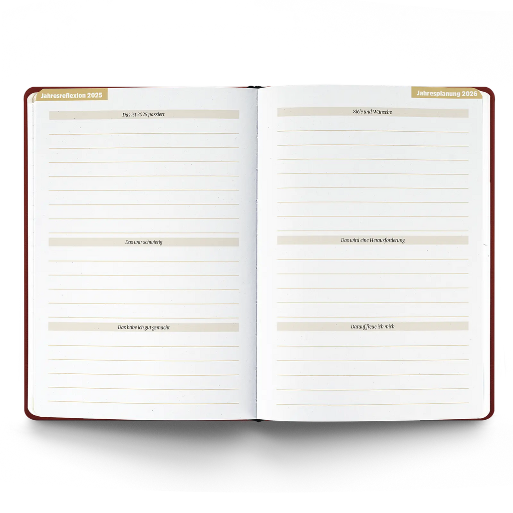 Ein guter Plan Pro 2026 ist ein ganzheitlicher Terminkalender, der dir viel Platz für deine Aufgaben, Notizen und Ziele bietet. Die Pro-Version ist robuster und etwas kompakter als Ein guter Plan und bietet trotzdem mehr Platz für Termine und Aufgaben. Weltneuheit: Das Kunstleder besteht hauptsächlich aus Pflanzenfasern statt Erdöl.