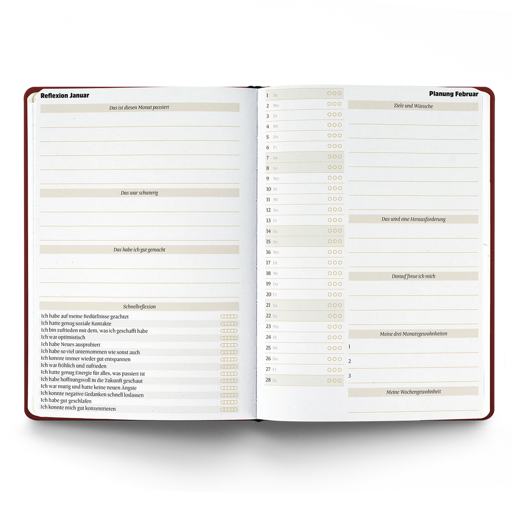 Ein guter Plan Pro ist ein prallgefülltes Paket der Planung. Monatsübersicht, Habit-Tracker, Zieldefinition, Notizen und To-dos: alles findet seinen Platz. So wird dein Kalender zur Schaltzentrale deines Lebens.