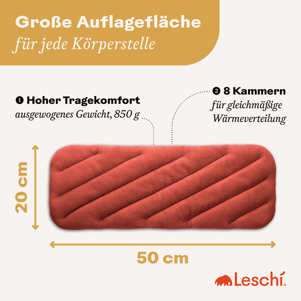 Das Leschi Wärmekissen kann in der Mikrowelle sicher, schnell und einfach erwärmt werden. Eine ausführliche Aufwärmanleitung wird selbstverständlich mitgeliefert.