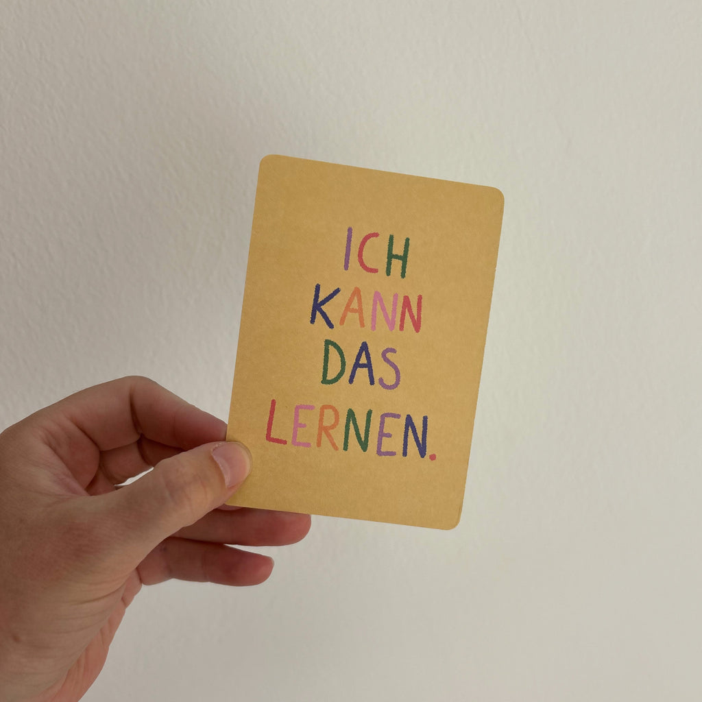 Du kannst es schaffen - du kannst es lernen. Doppelseitige Affirmationskarte mit zwei bestärkenden Botschaften für Schulkinder und alle, die Motivation brauchen.