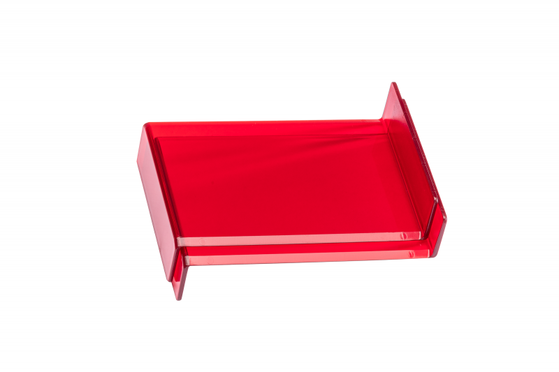 Durchscheinender Geometriespiegel (15 x 10 x 6cm), aus hochschlagfestem, halbtransparentem, rotem RE-Plastic.
