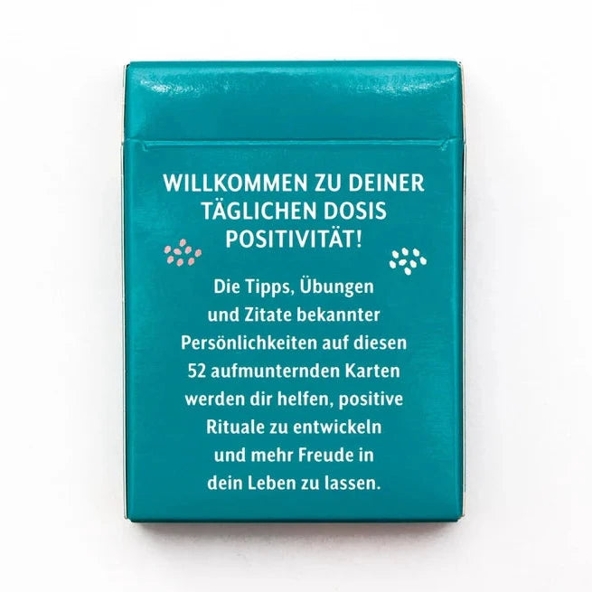 Heißt Gefühle der Zuversicht und des Optimismus in eurem Leben willkommen! Die Tipps, Übungen und Zitate bekannter Persönlichkeiten auf diesen 52 aufmunternden Karten werden euch helfen, positive Rituale zu entwickeln und mehr Freude in euer Leben zu lassen.