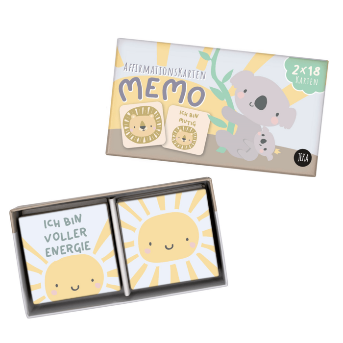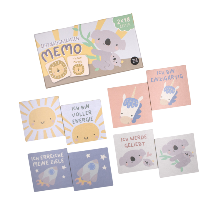 Entdecke die Welt der positiven Verstärkung mit unserem einzigartigen Memospiel für Groß und Klein! Unsere Karten sind liebevoll illustriert und enthalten 18 positive Affirmationen, die das Selbstbewusstsein stärken, die Motivation fördern und Freude verbreiten.