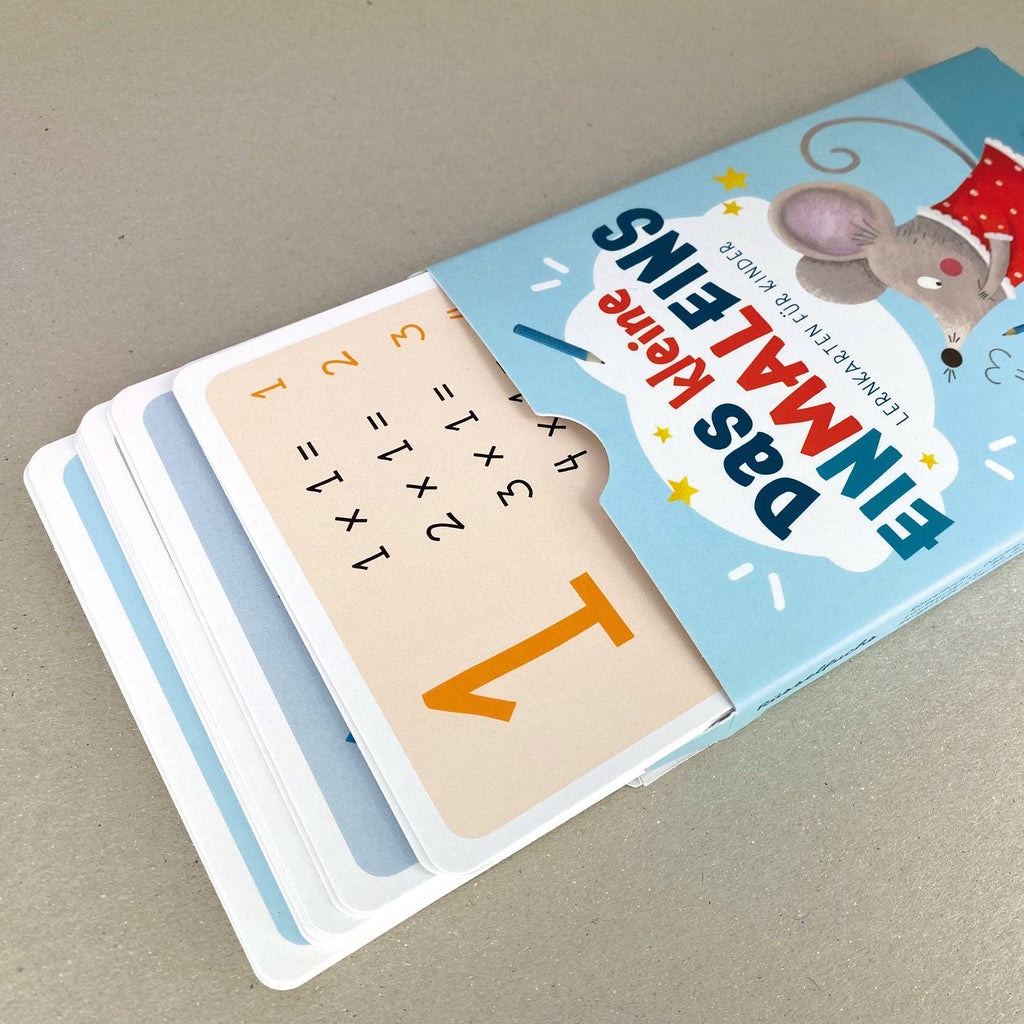 So macht das Einmaleins lernen Spaß! Unsere Einmaleinskarten sind das perfekte Hilfsmittel für Kinder, um das 1x1 spielerisch und effektiv zu erlernen. Die farbenfroh illustrierten Lernkarten sind speziell entwickelt, um Kinder beim Einmaleins Lernen zu unterstützen. Im handlichen Format passen sie in jeden Schulranzen. Ideal für den Einsatz unterwegs, in der Schule und zuhause.