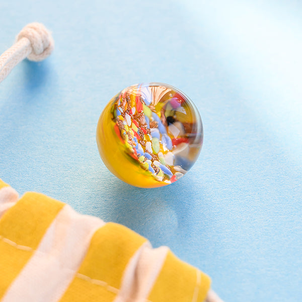 Murmel aus hochwertigem Muranoglas im Stoffbeutel.