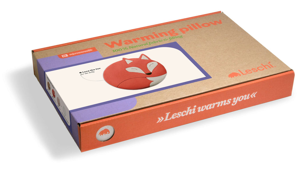 Sobald du Wärme brauchst, ist dein Leschi Fuchs zur Stelle: einfach in die Mikrowelle legen, kurz erwärmen und entspannen. Eine detaillierte Anleitung zum sicheren Aufwärmen deines Körnerkissens liegt selbstverständlich bei.