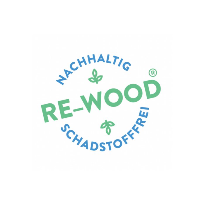 Für ihr RE-Wood® verwenden sie ausschließlich 100% recycelte Holzreste und führen die eingesetzten Rohstoffe konsequent wieder ihrem Produktkreislauf zurück. Cradle to cradle. Produktionsabfälle werden wieder verwendet und wird eine Materialausnutzung von über 98% erzielt. Auch beim Verpackungsmaterial wird weitgehend auf Kunststofffolien verzichtet und nur Kartonmaterial verwendet.