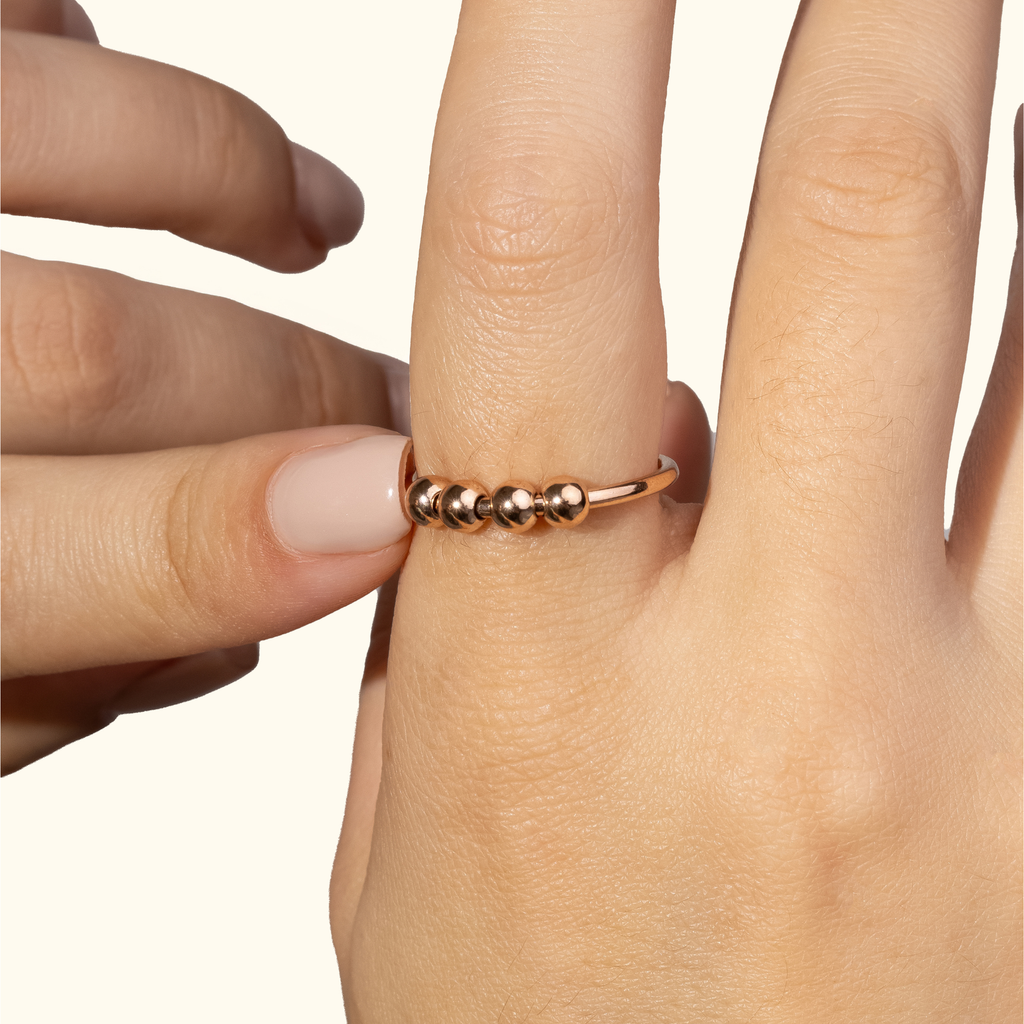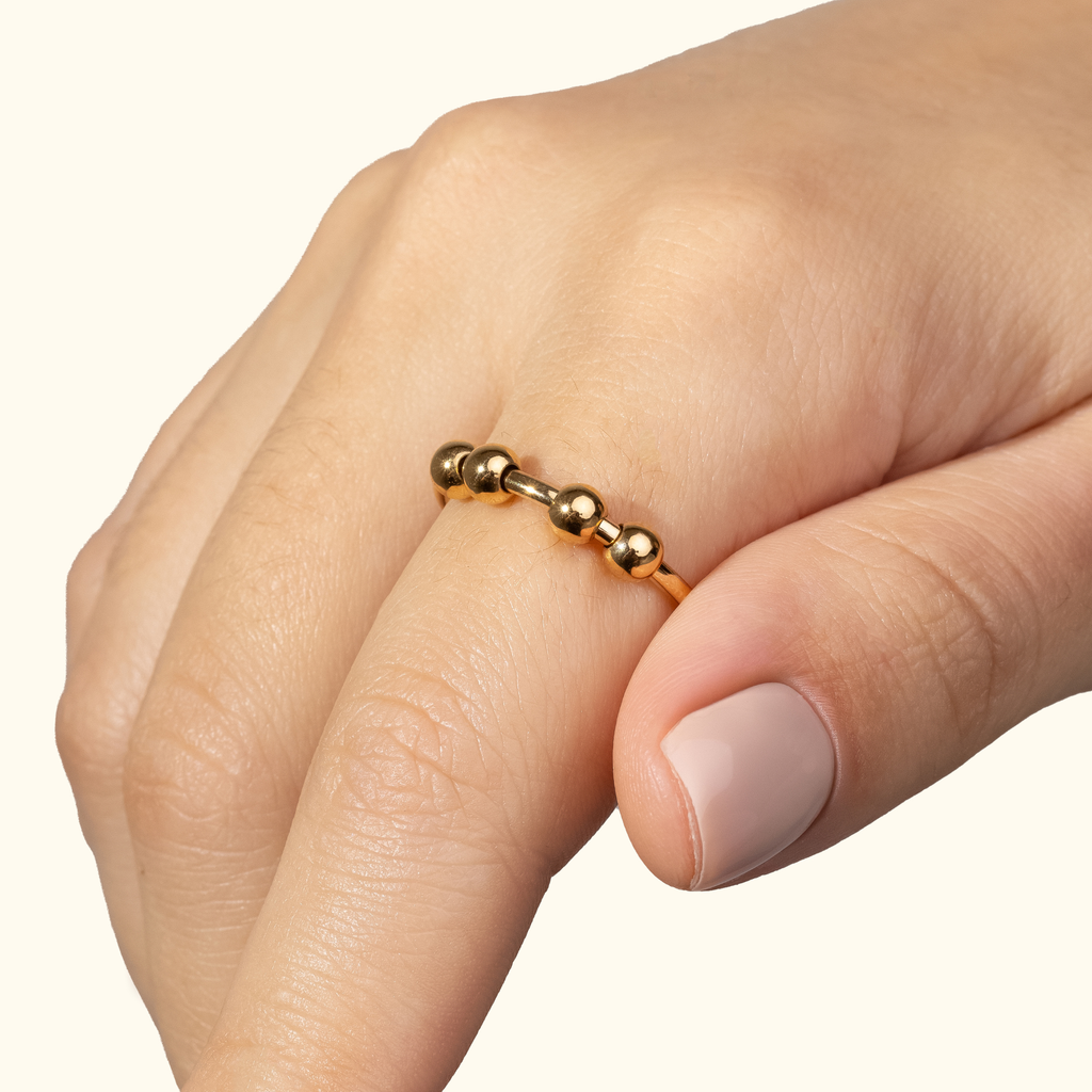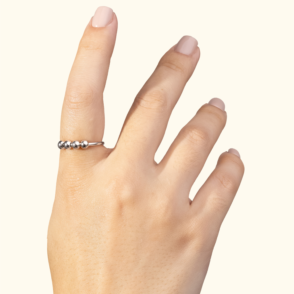 La Bague Chill ist das ikonische Modell von Lullie, entworfen, um Stress, Angst und nervöse Gewohnheiten wie Nägelkauen oder Hautzupfen zu lindern. Ausgestattet mit 4 beweglichen Perlen, die eine diskrete sensorische Stimulation bieten, hilft er, sich zu zentrieren und aufdringliche Gedanken zu kanalisieren.
