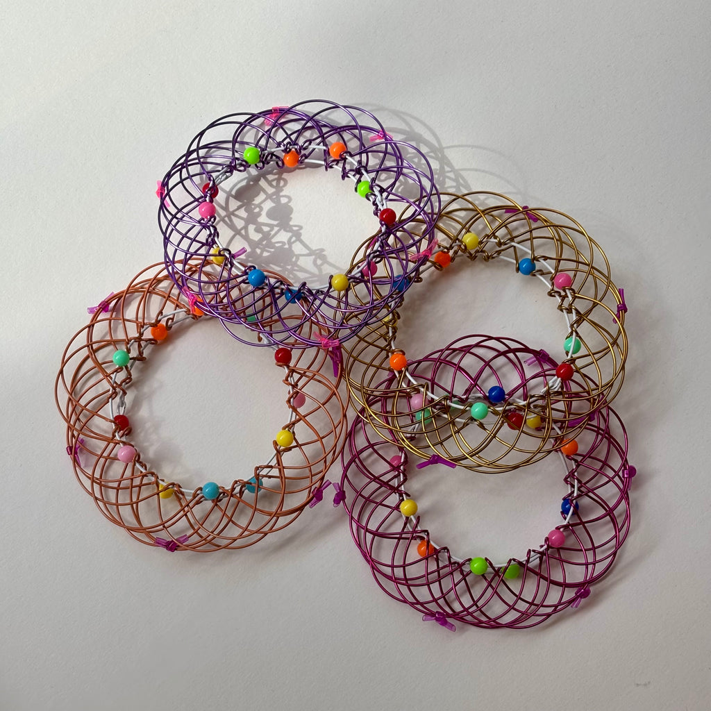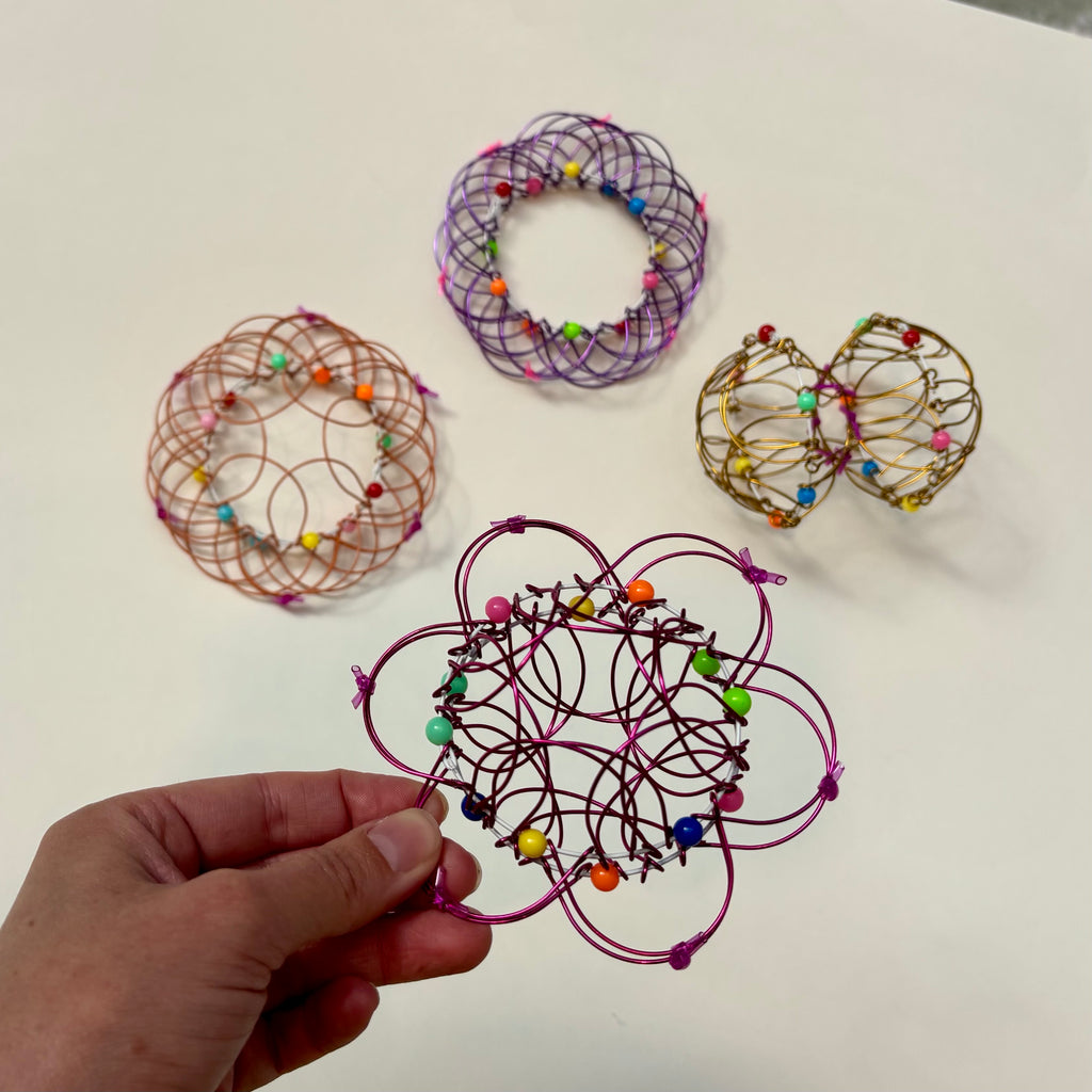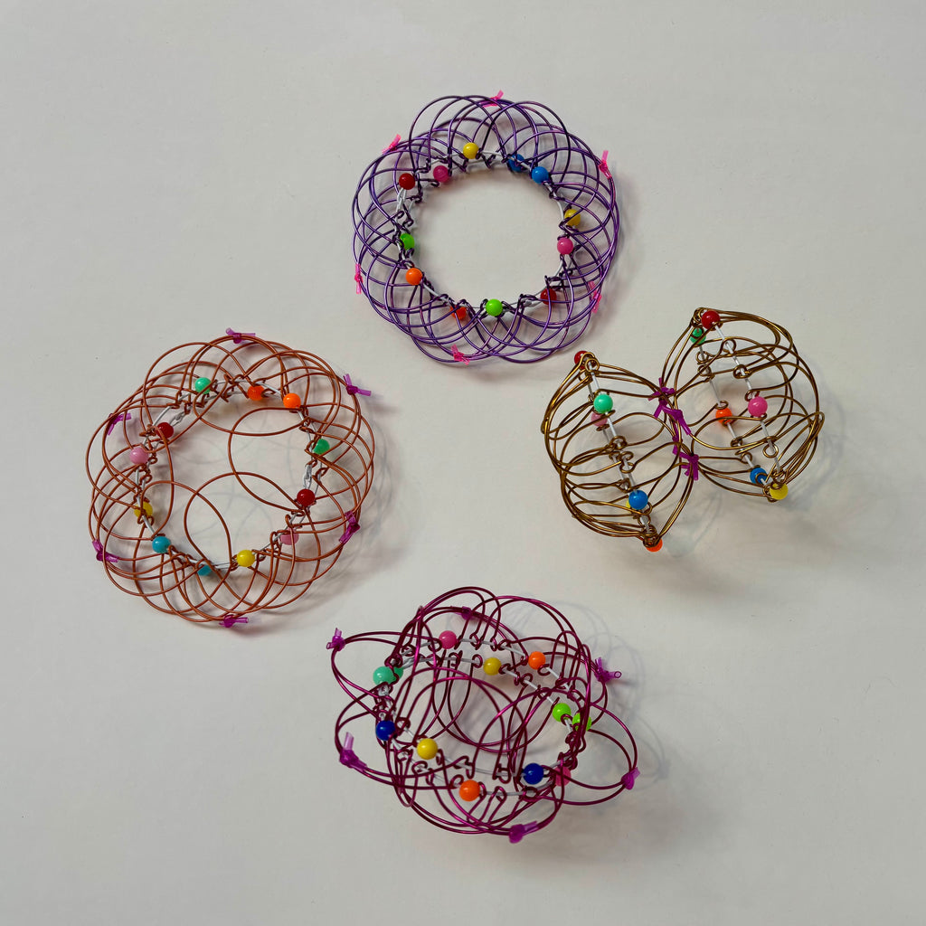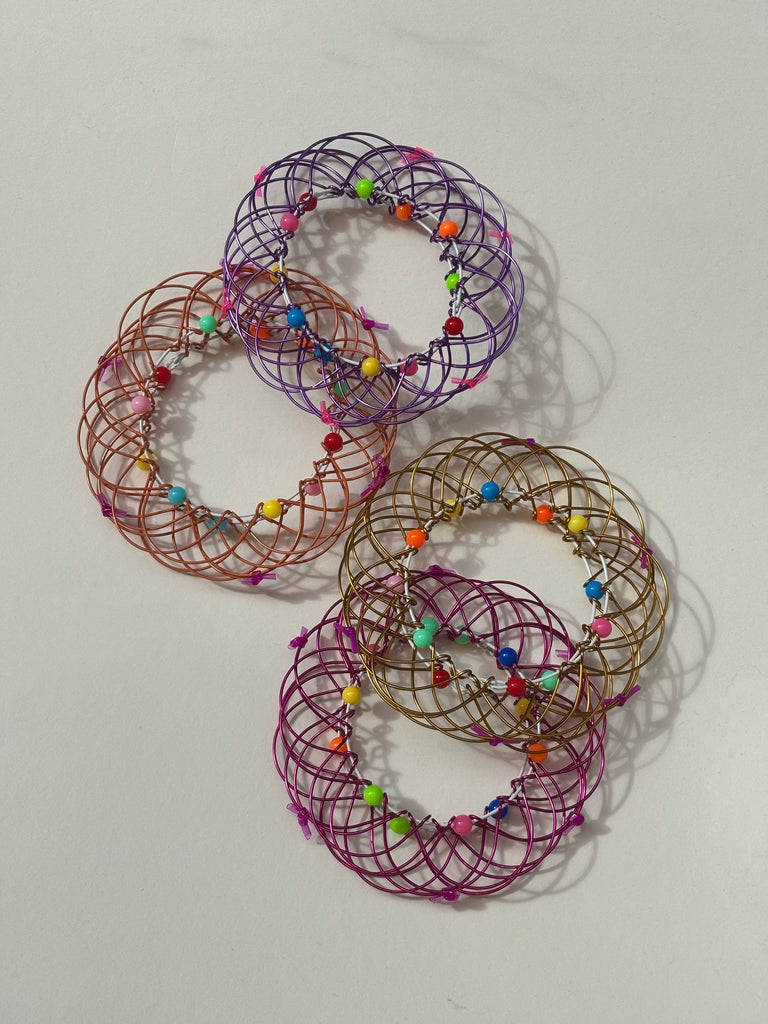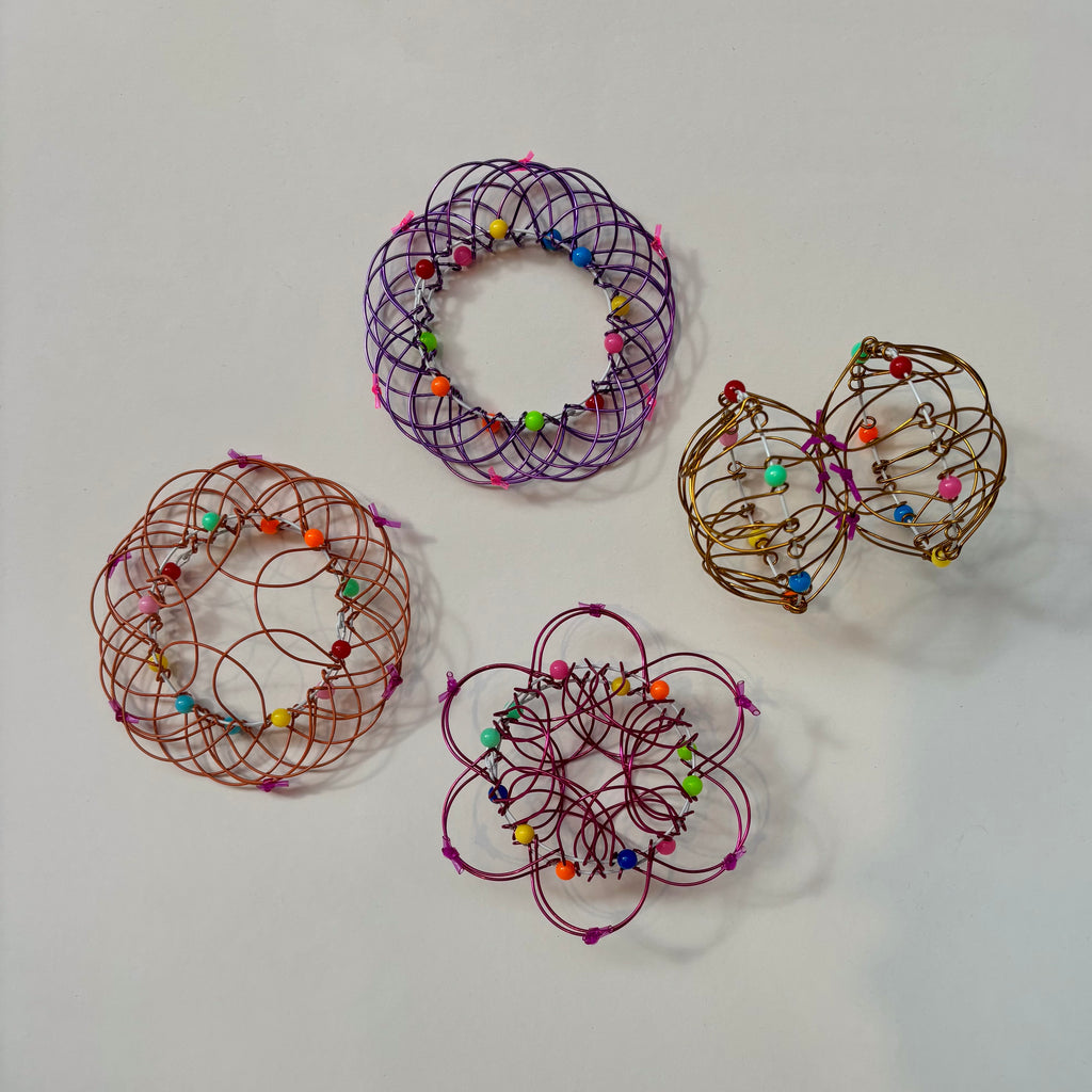 Ein traditionelle Spiel, dass die Finger beschäftigt und sich nur schwer wieder aus der Hand legen lässt. Das Metallmandala kann durch bewegen der einzelnen Elemente immer wieder in neue Formen gebracht werden. Das Metall kann an den Verbindungen gefaltet und geklappt werden, bleibt aber immer zusammenhängend in einem Stück.