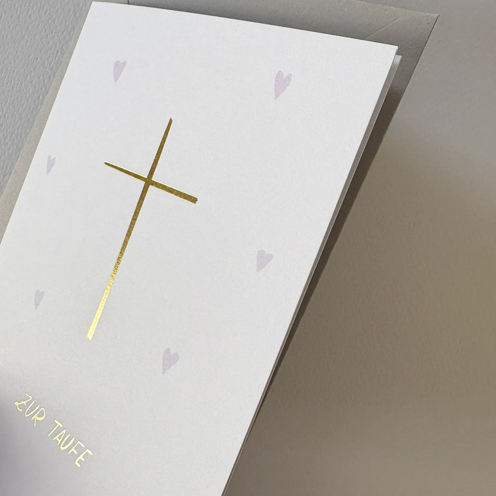 Grußkarte "Zur Taufe" Herzen / Kreuz mit Kuvert