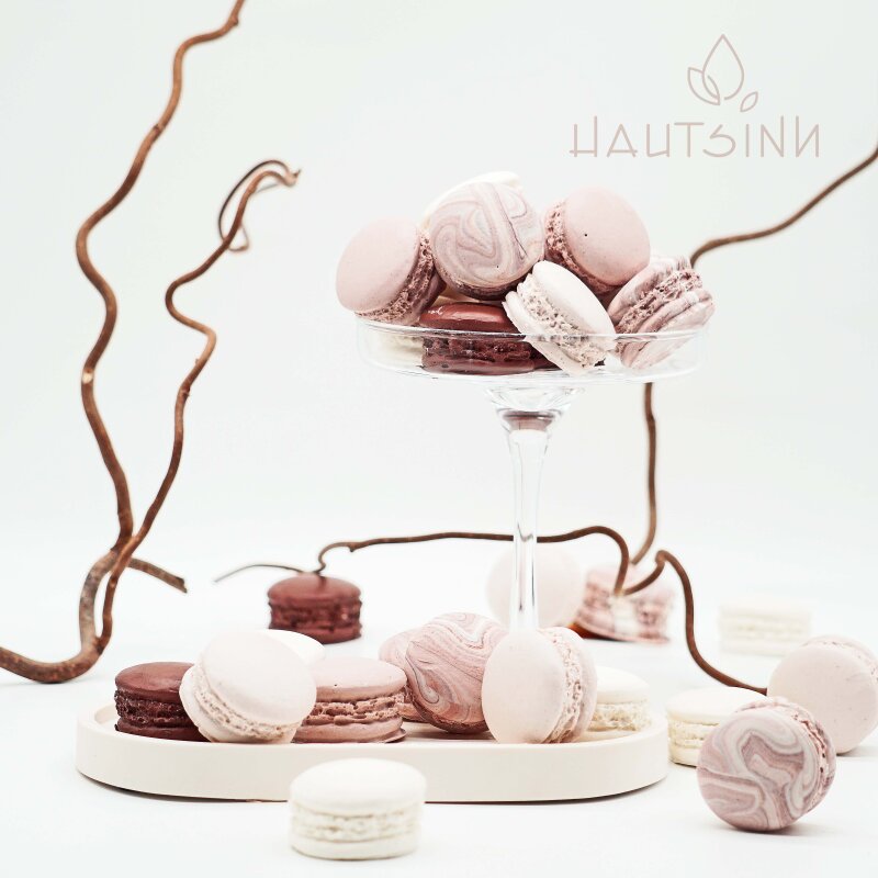 Die Macarons kommen in zufälliger Farbauswahl im Duett in einer schönen Schachtel verpackt.