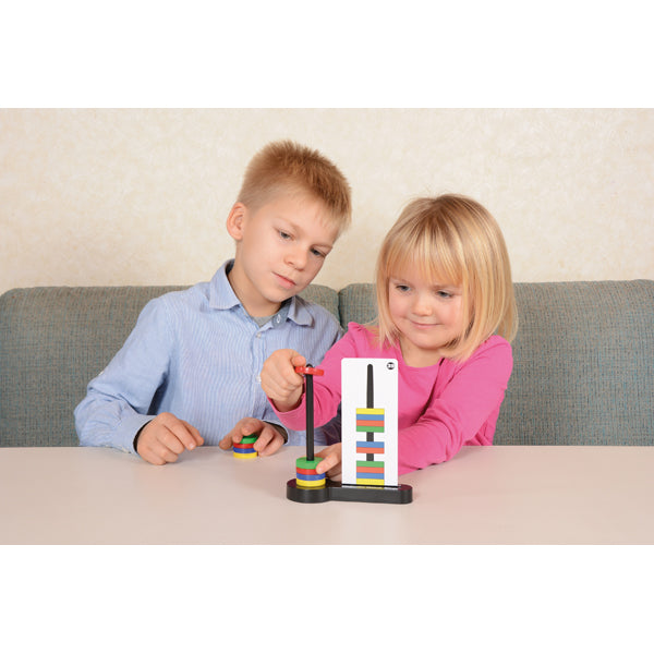 Die Vorlagenkarten zeigen wie die magnetischen Ringe übereinander aufgereiht werden sollen. Dabei lernen Kinder auf spielerische Weise die Polarisierung kennen wie sich gleiche Pole abstoßen und unterschiedliche Pole anziehen.