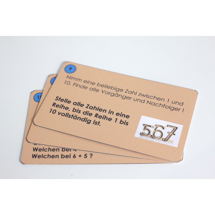 Satz aus 42 Aufgabenkärtchen (108 x 64 mm) in Ergänzung zu unseren Stapelzahlen (30 von 42 Kärtchen kompatibel mit R80021.000 & R80021.M00, 35 von 42 Kärtchen kompatibel mit 2 x R80021.000, alle 42 Kärtchen kompatibel mit 5 x R80021.000).
