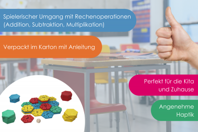 - Spielerischer Umgang mit Rechenoperationen (Addition, Subtraktion, Multiplikation) verknüpft mit strategischem Denken