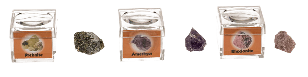 Mineralsteine in Vergrößerungsbox mit Begleitheft