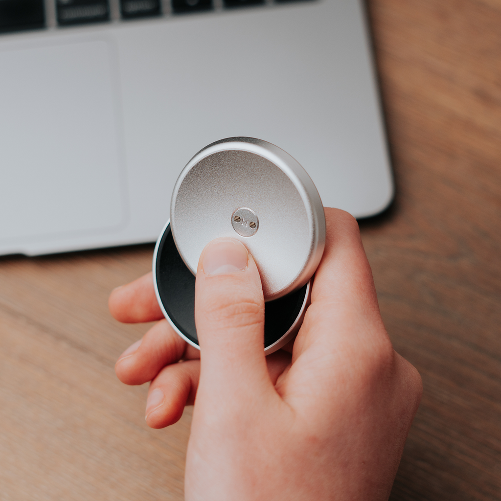Inspiriert von der befriedigenden Bewegung des Mischens zweier Pokerchips, beruhigt der ONO™ Slider den Geist und lenkt Ihre Aufmerksamkeit durch eine endlose, kreisförmige Bewegung zweier leicht magnetisierter Scheiben auf den gegenwärtigen Moment. Konkav geformt, ist der Slider ergonomisch gestaltet, um sich dem natürlichen Bewegungsradius Ihrer Hände anzupassen.
