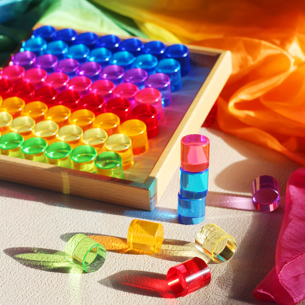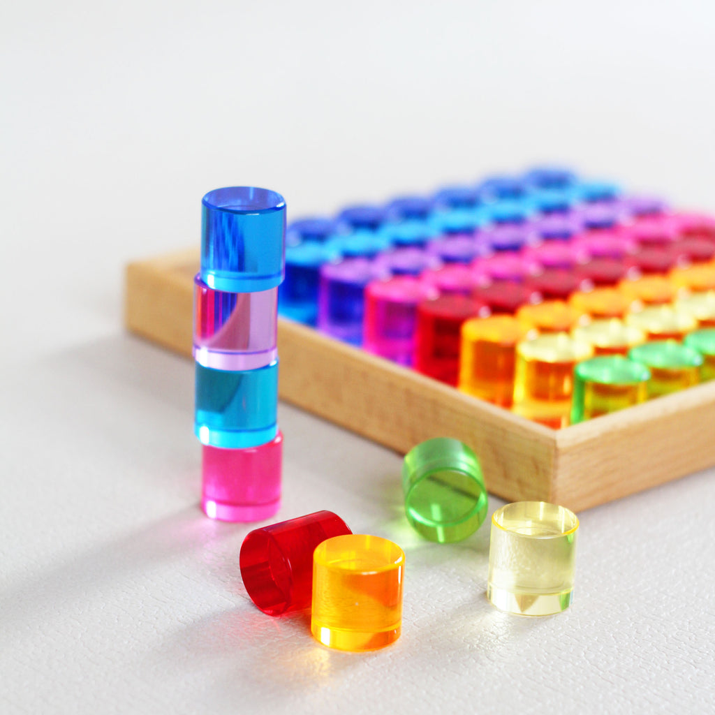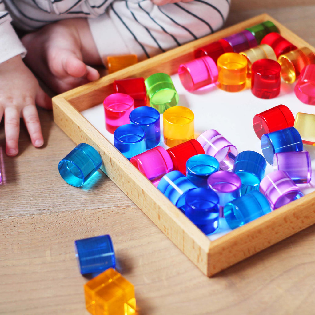 Wunderschöne Bausteine aus Acrylglas für spannende Spiele mit Licht und Schatten. Sie können als eigenständiges Spielzeug genutzt werden oder als Ergänzung zu Holzbausteinen, Lichttisch, Farbenkreis und viele mehr bespielt werden.