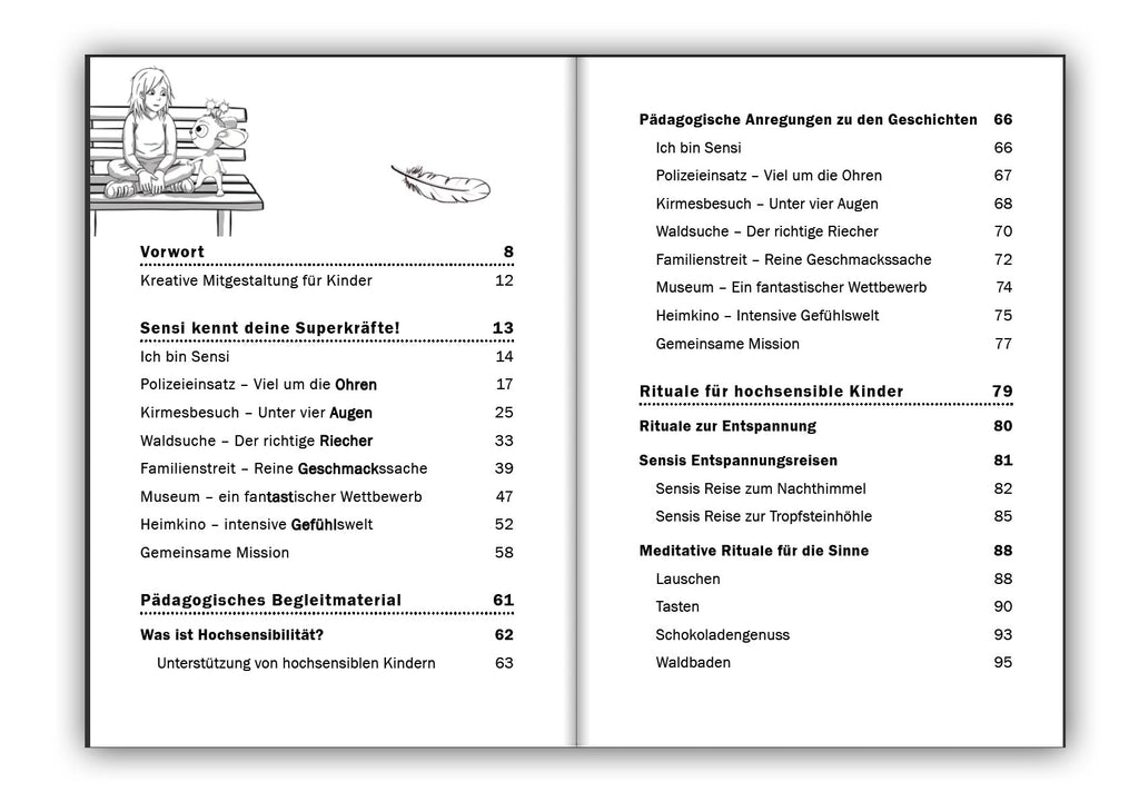 In diesem Buch lernen hochsensible Kinder, ihre Wahrnehmungen und Gefühle zu verstehen und selbst zu regulieren. Sie werden achtsam angeleitet, das individuelle Energielevel zu spüren und rechtzeitig Pausen zu machen, um Kraft zu tanken. Spielerisch entdecken sie mit Manu und Sensi ihre eigenen Superkräfte.