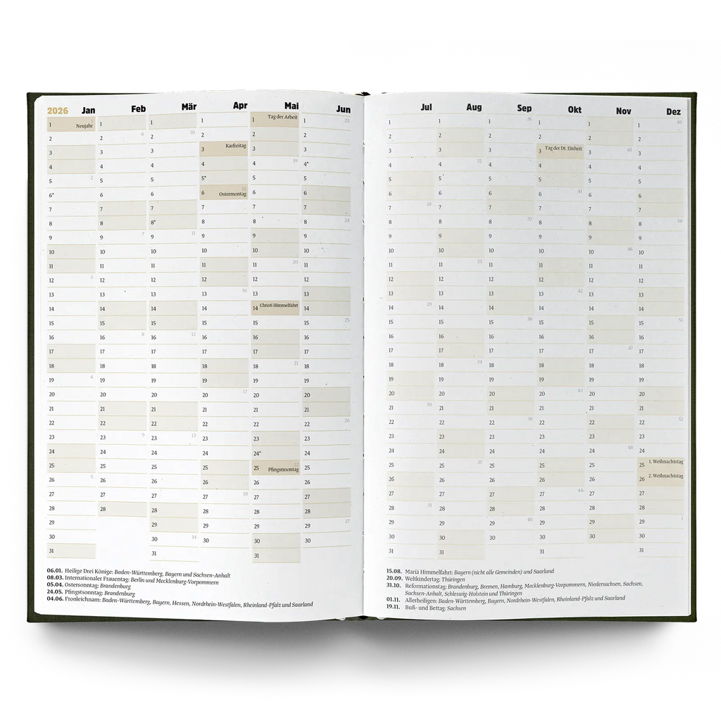 In Berlin entwickelt, im Schwarzwald gebunden. Ein guter Planentsteht in traditioneller Buchdruckkunst in einem deutschen Familienbetrieb.