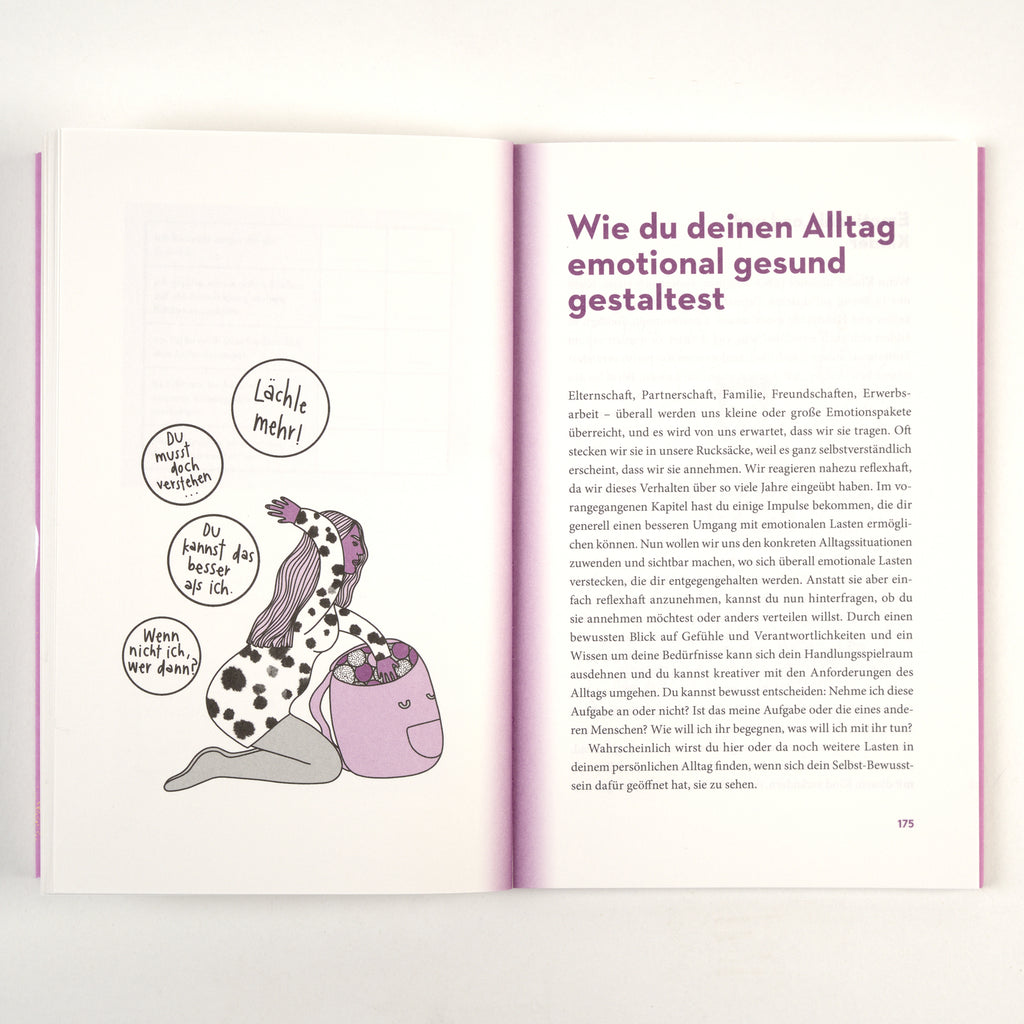 Wir schauen uns genau an, wo von uns mehr emotionale Arbeit erwartet wird als von Männern und wir in eine scheinbar selbstverständliche Verantwortung gedrängt werden. Der Weg zum emotionalen Wohlbefinden bedeutet nicht, dass wir uns noch mehr optimieren müssen. Der Weg raus aus dem Emotional Load beginnt mit einem Blick auf dich, deinen Rucksack, den du individuell trägst, und deine emotionale Muskelmasse. Wir werden ergründen, wie über Generationen aufgebaute Lasten um und in uns abgebaut werden und wie wir das ganz konkret in den Bereichen Erziehung, Familie, Partnerschaft und Beruf umsetzen können.« Susanne Mierau