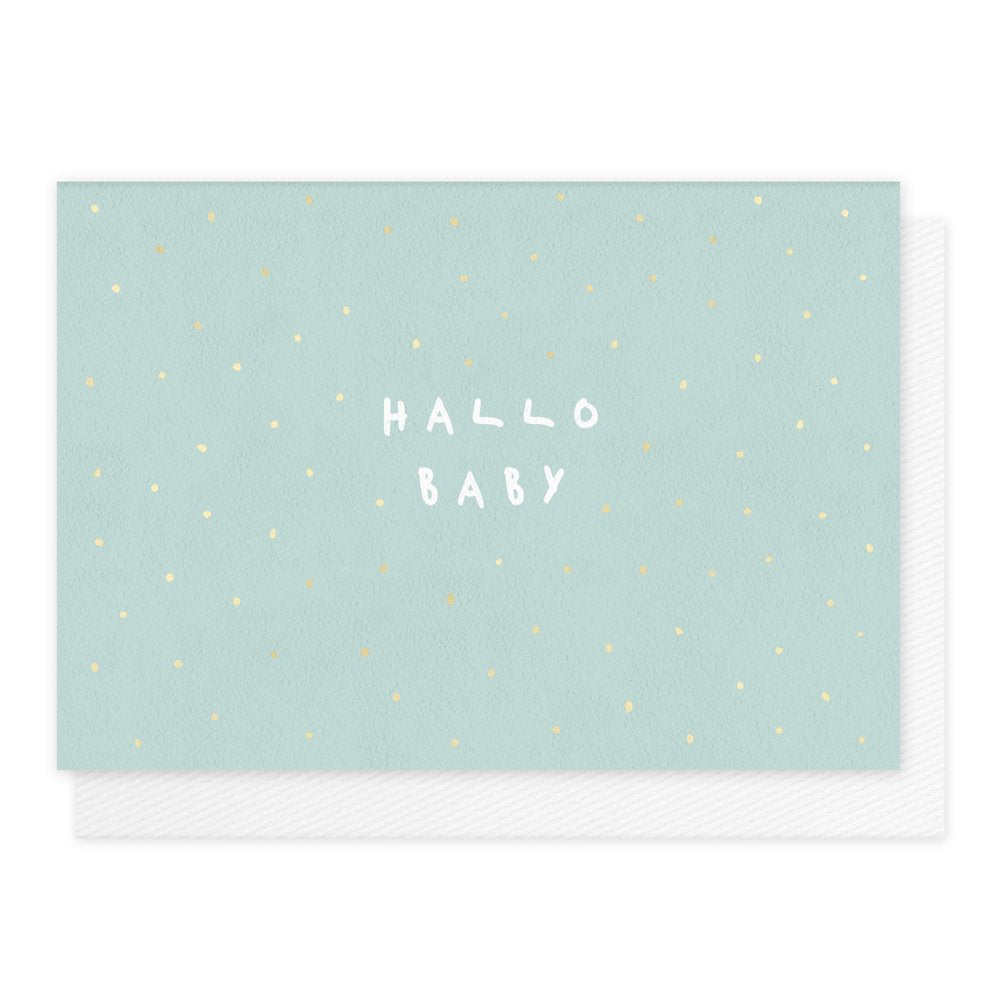 Die stilvolle Doppelkarte "Hallo Baby" von Katrin Reidegeld heißt den neuen Erdenbürger herzlich willkommen. Schließen Sie sich den Grüßen an und versenden Sie die Karte mit Ihren persönlichen Grüßen an das Baby und dessen Eltern.