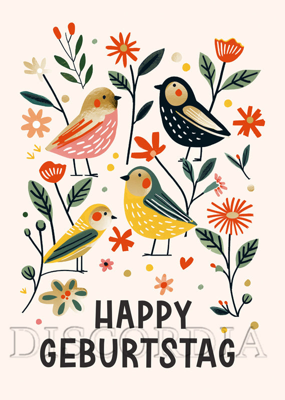 Grußkarte *Happy Geburtstag* Vögel & Blumen