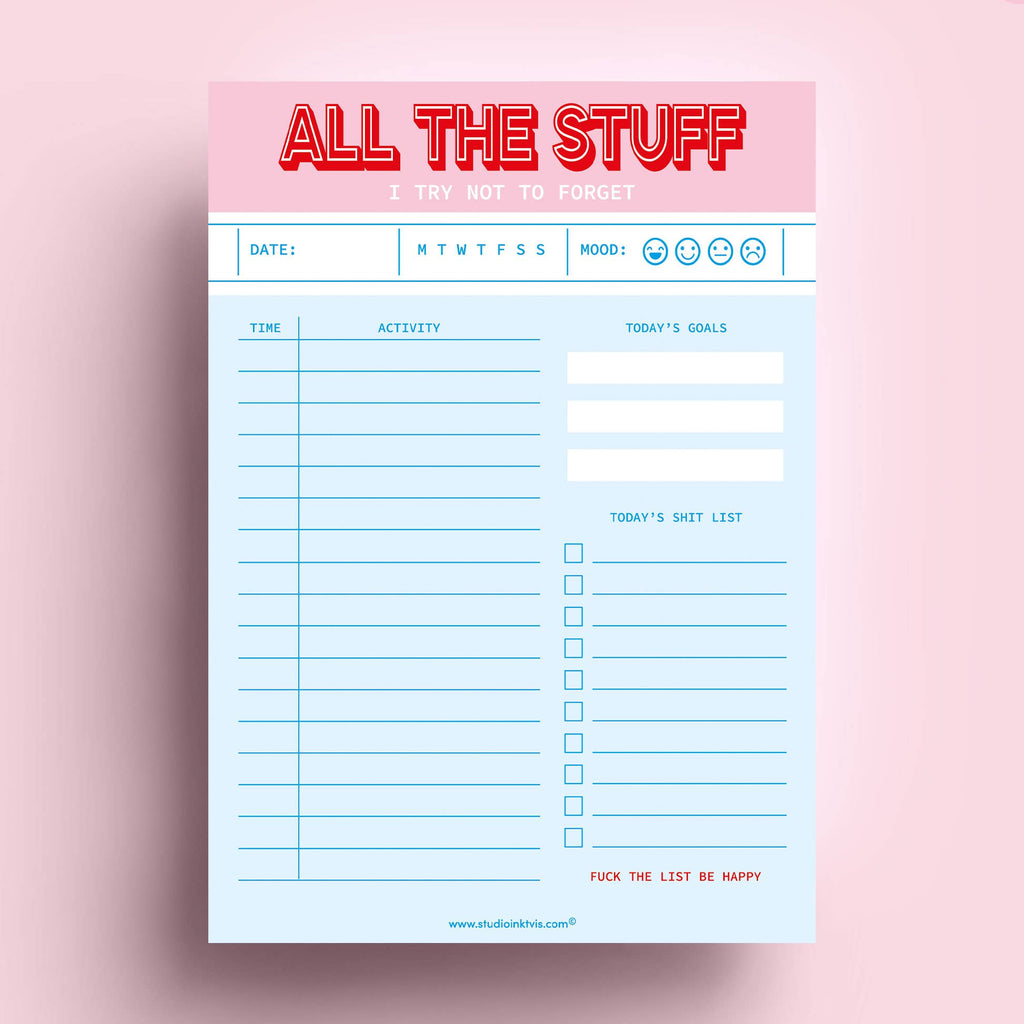 Notizblock für "All die Dinge, die ich versuche nicht zu vergessen". Benutze das Notepad (All the stuff I try not to forget) für mehr Übersicht und Struktur. Der Notizblock ist nicht nur nützlich, sondern auch lustig und farbenfroh!